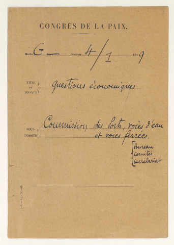 Nomination des représentants des délégations, mise en vigueur des compétences sur les questions économiques, communication des séances plénières, rédaction de clauses à imposer aux puissances ennemies (janvier 1919-septembre 1919).