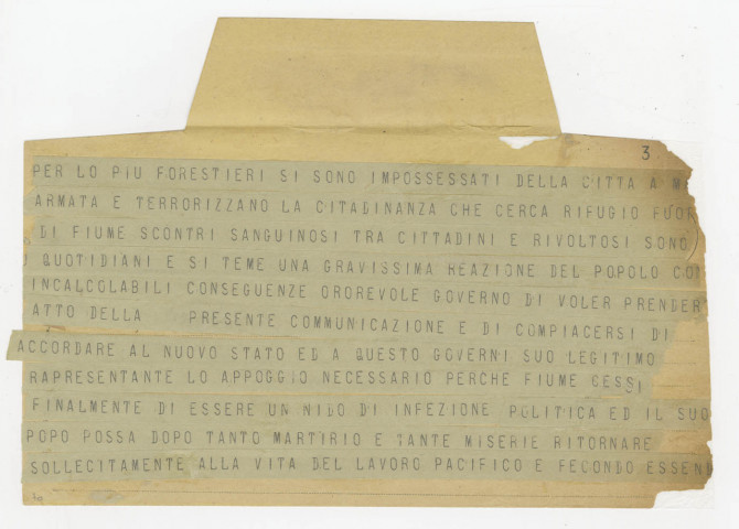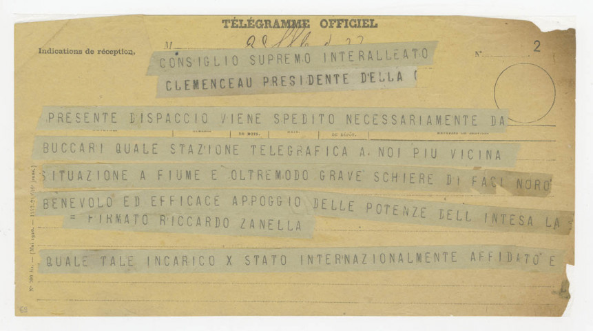 Revendications italienne, yougoslave et hongroise sur la ville et le port, occupation italienne, incidents et persécutions, pétitions des populations pour un rattachement à l'Italie ou à la Yougoslavie ou pour une internationalisation de Fiume, compagnies et navires de commerce et de guerre austro-hongrois sur les territoires disputés, Commission interalliée d'enquête de Fiume [dont procès-verbaux n°1 à 20 et rapport], négociations entre l'Italie, la Yougoslavie et les Alliés, création d'un nouvel Etat de Fiume, négociations entre Fiume et la Yougoslavie pour le port de Baros, demande d'indemnités au Gouvernement français par l'Italie (février 1918-septembre 1927) [à noter la présence de grands formats]