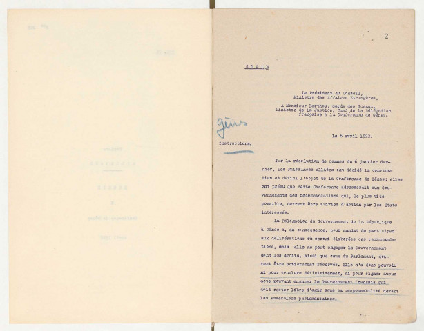 Les documents qui font l'objet de cet inventaire ont été donnés au ministère des Affaires étrangères en 1943, après la mort d'Alexandre Millerand, par le fils de celui-ci Jean.