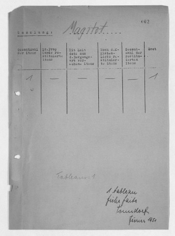 Copies des listes d'œuvres dressées par le service allemand ERR au moment des spoliations. S'y ajoutent des archives retrouvées par les Alliés documentant l'activité de l'ERR.