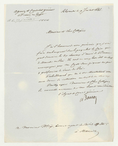 Avec le fonds conservé aux Archives nationales (série AE BIII 212-230), cette importante correspondance conservée aux Archives diplomatiques de La Courneuve permet d'identifier les différents titulaires qui, avec le titre de consul ou de consul général, se succèdent à sa tête : Gabriel-Augustin Guys (en qualité de correspondant puis d'agent jusqu'en 1800), Pierre-Marie Dubosc (par intérim, 1794), Vattier-Bourville et Lazare-Magallon (1799-1800), Dominique Bertrand (1801-1825) et César Famin (de facto, 1801-1825), Bottu (1826-1827), Guys (1827-1837), Miège (1838-1848), Desage (1848-1851), Auguste de Nollent (1851-1854), Vattier de Bourville (1854-1860), Gaillard de Ferry (1860-1862) et Mure de Pelanne (1862-1874). Surtout, cette correspondance permet de retracer au plus près le périmètre de leurs activités, lequel se trouve redéfini plusieurs fois au cours de la première moitié du XIXe siècle, en lien notamment avec l'évolution des missions de la Chambre de Commerce de Commerce.