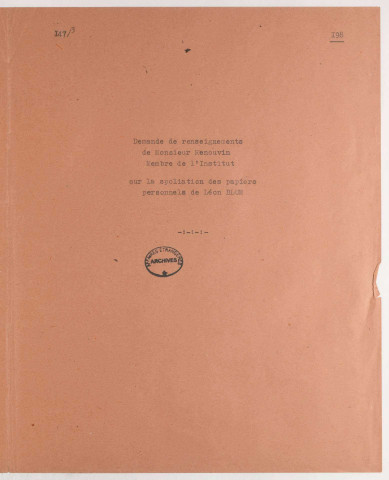 Ce fonds constitue la principale source française d'informations sur les spoliations de biens culturels commises contre les victimes juives (Alliance israélite universelle, consistoires, particuliers) et les victimes non juives (musées, bibliothèques, particuliers) pendant la Seconde Guerre mondiale. Il donne des éléments d'information sur les biens signalés spoliés par les victimes ou rapatriés par les services chargés de la récupération artistique. Il peut donner des informations sur l'itinéraire du bien, sa spoliation, sa récupération éventuelle et son rapatriement.