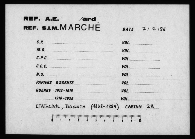 Les registres ayant été versés en volumes reliés de plusieurs années, ne correspondant pas au découpage chronologique ci-dessus, ont été intégrés dans série ad hoc, dite des Volumes par opposition aux sous-séries des Cartons.