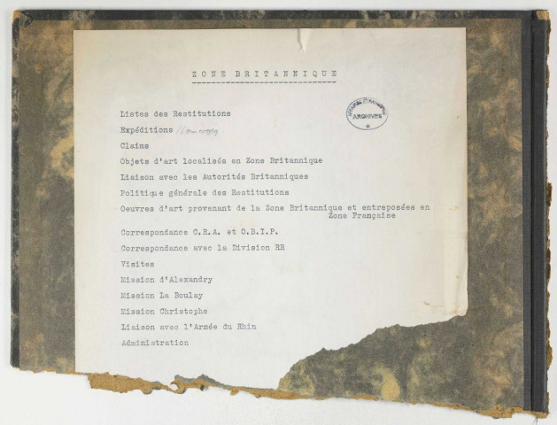 À ces dossiers de réclamation s'ajoutent les archives des services français localisés en zone d'occupation en Allemagne et en Autriche, chargés de retrouver et de rapatrier les biens spoliés (séries alphabétiques A à R, cotées 209SUP/108 à 590). Ces archives comprennent les claims, les correspondances entre services, les rapports d'enquêtes, les liaisons avec les zones d'occupation alliées et leurs collecting points, les listes de biens rapatriés en France.