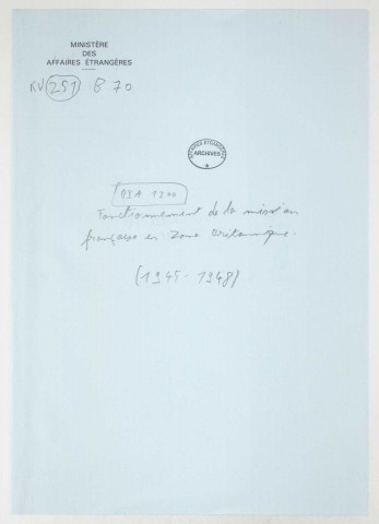 Tous les articles communicables peuvent être reproduits pour usage personnel. Pour les utilisations publiques ou commerciales, il convient de s'enquérir des conditions auprès des Archives diplomatiques.