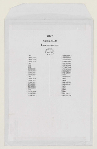 Les 2 443 dossiers nominatifs de réclamation adressés par les victimes à la CRA et à l'OBIP, en vertu des décrets des 13 et 24 novembre 1944 et de l'arrêté du 16 avril 1945, constituent l'origine du fonds (séries CRA et OBIP, cotées 209SUP/1 à 73, et 209SUP/591-705 et 726-737, 209SUP/921-927, 1061-1065, 1100-1145). Ces dossiers se composent de la correspondance entre les victimes et l'administration, des listes et descriptions des biens spoliés, accompagnées parfois de photographies (série « Albums photographiques », cotée 209SUP/933 à 1044), ainsi que des lettres de décharge en cas de restitution des biens.