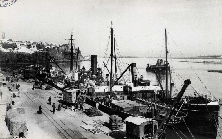 Vues de Rabat, activité économique et portuaire, transports, personnalités (Moulay Hafid, Moulay Youssef) au début du Protectorat.