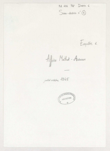 Les 2 443 dossiers nominatifs de réclamation adressés par les victimes à la CRA et à l'OBIP, en vertu des décrets des 13 et 24 novembre 1944 et de l'arrêté du 16 avril 1945, constituent l'origine du fonds (séries CRA et OBIP, cotées 209SUP/1 à 73, et 209SUP/591-705 et 726-737, 209SUP/921-927, 1061-1065, 1100-1145). Ces dossiers se composent de la correspondance entre les victimes et l'administration, des listes et descriptions des biens spoliés, accompagnées parfois de photographies (série « Albums photographiques », cotée 209SUP/933 à 1044), ainsi que des lettres de décharge en cas de restitution des biens.