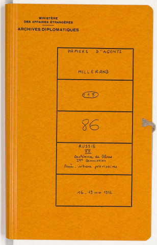Les documents qui font l'objet de cet inventaire ont été donnés au ministère des Affaires étrangères en 1943, après la mort d'Alexandre Millerand, par le fils de celui-ci Jean.