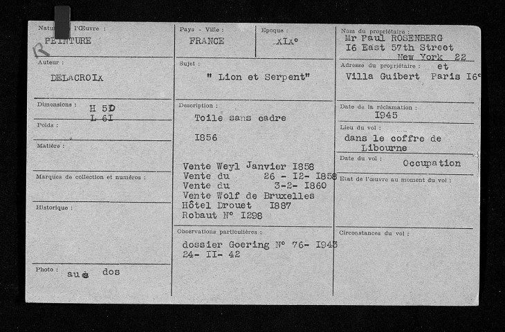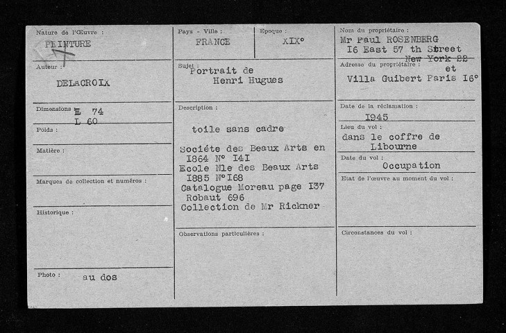 Les fichiers d'œuvres spoliées (série « Fichiers », cotée 209SUP/738-887) ont été établis d'après les déclarations de victimes ou d'après la listes des biens retrouvés en Allemagne et en Autriche.