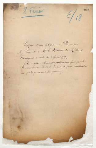 Tous les articles communicables peuvent être reproduits pour usage personnel. Pour les utilisations publiques ou commerciales, il convient de s'enquérir des conditions auprès des Archives diplomatiques.