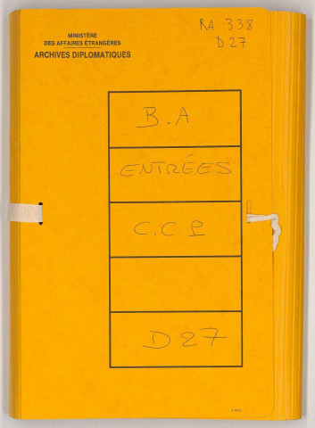 Tous les articles communicables peuvent être reproduits pour usage personnel. Pour les utilisations publiques ou commerciales, il convient de s'enquérir des conditions auprès des Archives diplomatiques.