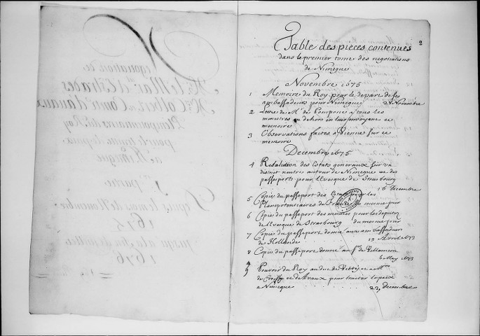 Vitry, le marquis de Croissy, le comte d'Avaux, plénipotentiaires ; le comte d'Estrades, ambassadeur plénipotentiaires ; Des Carrières, agent secret ( à Nimègue).