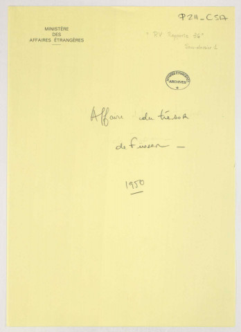 Tous les articles communicables peuvent être reproduits pour usage personnel. Pour les utilisations publiques ou commerciales, il convient de s'enquérir des conditions auprès des Archives diplomatiques.