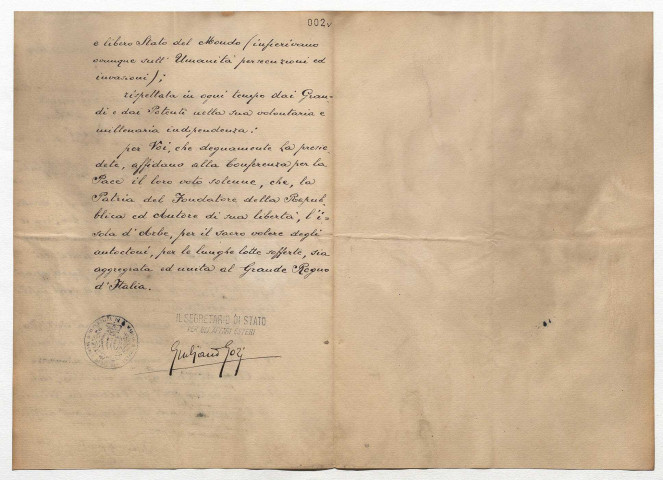Renonciation italienne sur des territoires en faveur de la Grèce : traité (août 1920) (E.19/5) [Fo.7-11].