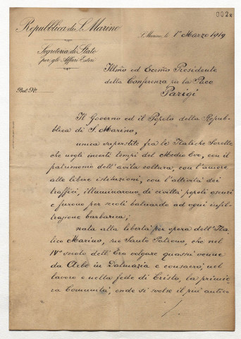 Arrangement relatif aux réparations pour l'Italie (septembre 1919) (E.19-4) [Fo.1-6].
