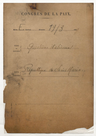 Tous les articles communicables peuvent être reproduits pour usage personnel. Pour les utilisations publiques ou commerciales, il convient de s'enquérir des conditions auprès des Archives diplomatiques.