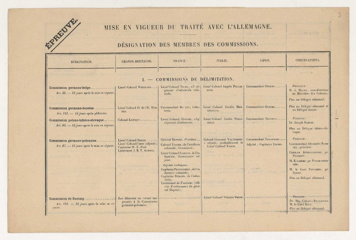 Traité de Versailles du 28 juin 1919, relatif à la paix avec l'Allemagne et à l'institution de la Société des Nations (SDN).