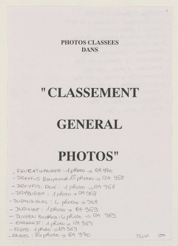 Cet série se compose de 2443 dossiers nominatifs de réclamation adressés par les victimes (institutions ou particuliers) à la Commission de récupération artistique à partir de novembre 1944. Ces dossiers sont classés par noms de requérants. Cette série constitue le noyau originel des archives des services français de récupération artistique. Les dossiers de réclamation sont de volumes très divers (depuis celui composé de quelques feuillets, jusqu'aux dossiers Alphonse Kann, Paul Rosenberg, Rothschild ou David-Weill qui emplissent plusieurs cartons).