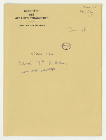 Tous les articles communicables peuvent être reproduits pour usage personnel. Pour les utilisations publiques ou commerciales, il convient de s'enquérir des conditions auprès des Archives diplomatiques.