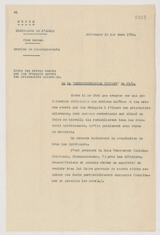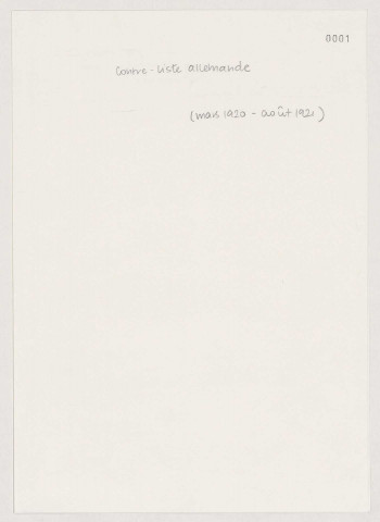 Contre liste allemande (C.6) (mars 1920-août 1921).