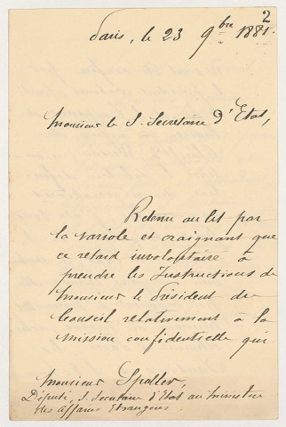 Eugène Spuller est né le 8 décembre 1835, à Forcheim (Bade-Wurtemberg). Elève du lycée puis de la faculté de droit de Dijon, il s'inscrit en 1862 au barreau de Paris, où il fréquente Gambetta, dont il est secrétaire en 1870-1871, durant la Défense nationale. Elu député républicain de la Seine en 1876 puis de la Côte-d'Or en 1885, sous-secrétaire d'Etat dans le "grand ministère" Gambetta en 1881, il est ministre de l'Instruction publique, des Beaux-Arts et des Cultes de mai à décembre 1887, ministère des Affaires étrangères de février 1889 à mars 1890, puis à nouveau ministre de l'Instruction publique en décembre 1893. Il meurt le 23 juillet 1896.
