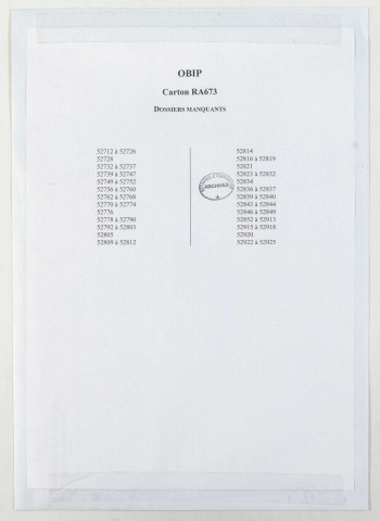 • 1917-1919 : Décrets de création de l'OBIP (l'OBIP est chargé de recenser les biens de ressortissants français tombés aux mains de l'ennemi)