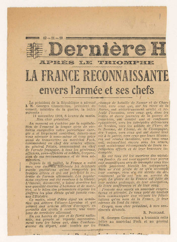 [1] Assez peu d'articles consacrés à son activité au Conseil supérieur de la guerre sont conservés dans ce fonds, essentiellement axés sur sa nomination et les manifestations auxquelles il assista (399 PAAP/214-216).