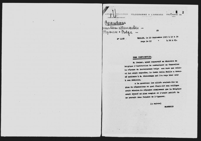 Les documents qui font l'objet de cet inventaire ont été donnés au ministère des Affaires étrangères en 1943, après la mort d'Alexandre Millerand, par le fils de celui-ci Jean.