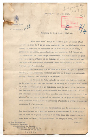 Défense des intérêts économiques et politiques belges (février 1919-août 1920).