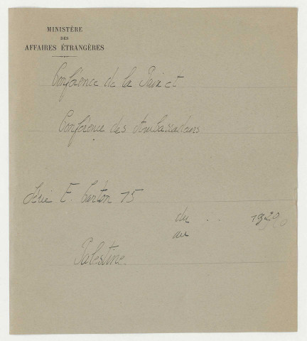 Tous les articles communicables peuvent être reproduits pour usage personnel. Pour les utilisations publiques ou commerciales, il convient de s'enquérir des conditions auprès des Archives diplomatiques.