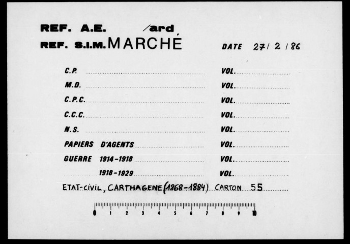 • Le premier, le registre primata, est conservé pendant 100 ans après clôture par le poste avant d'être versé aux Archives diplomatiques. La collection des registres primata est déposée au Centre des Archives diplomatiques de Nantes.