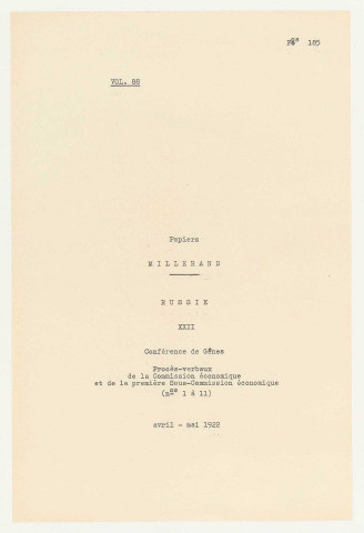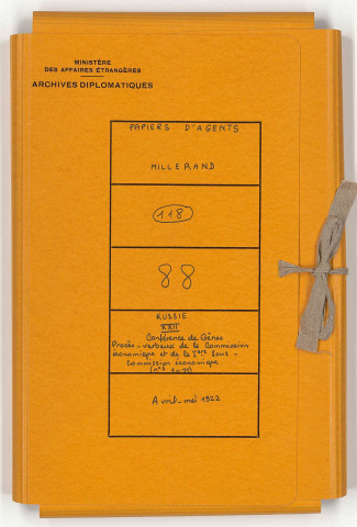 Le reste des papiers laissés par Millerand a été remis à la Bibliothèque Nationale qui les a ensuite cédés aux Archives nationales où ils sont conservés sous la cote 470 AP, voir fiche descriptive du fonds, pp. 725-727.
