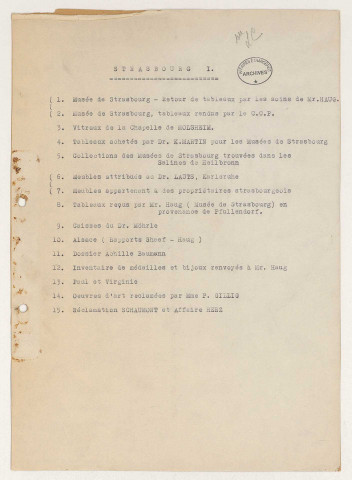Ce fonds constitue la principale source française d'informations sur les spoliations de biens culturels commises contre les victimes juives (Alliance israélite universelle, consistoires, particuliers) et les victimes non juives (musées, bibliothèques, particuliers) pendant la Seconde Guerre mondiale. Il donne des éléments d'information sur les biens signalés spoliés par les victimes ou rapatriés par les services chargés de la récupération artistique. Il peut donner des informations sur l'itinéraire du bien, sa spoliation, sa récupération éventuelle et son rapatriement.