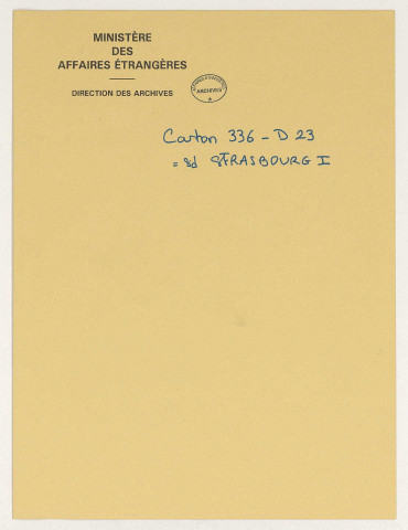 Tous les articles communicables peuvent être reproduits pour usage personnel. Pour les utilisations publiques ou commerciales, il convient de s'enquérir des conditions auprès des Archives diplomatiques.