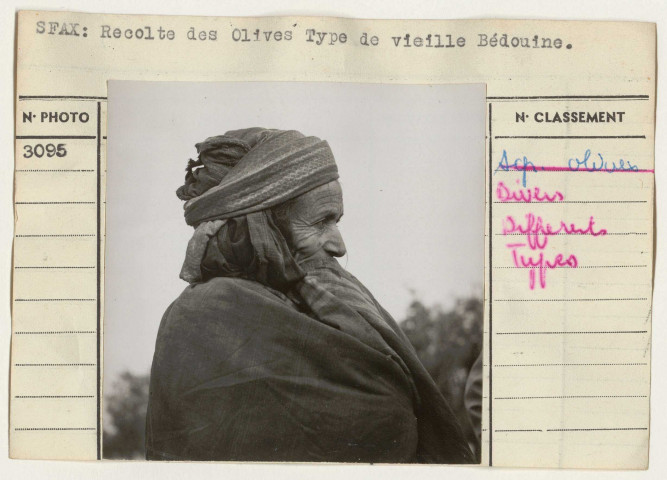 "Sfax : récolte des olives, types de vieilles bédouines". Cliché n°3095
