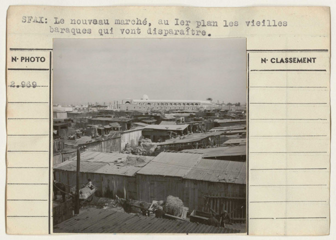 "Sfax : le nouveau marché, au 1er plan, les vieilles baraques qui vont disparaître". Cliché n°2969