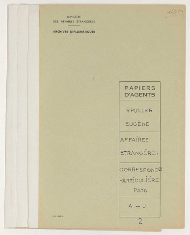 Le fonds Spuller est composé de deux parties bien distinctes. La plus ancienne traite de ses fonctions durant la Défense nationale, en 1870 et 1871, quand il accompagne Gambetta à Tours ; sa correspondance est alors classée dans l'ordre alphabétique des départements (nombre des lettres sont d'ailleurs adressées à Gambetta). La plus récente est composée de correspondance relative à ses fonctions ministérielles aux Affaires étrangères, classée dans l'ordre alphabétique des pays.