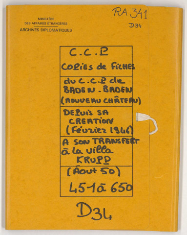 À ces dossiers de réclamation s'ajoutent les archives des services français localisés en zone d'occupation en Allemagne et en Autriche, chargés de retrouver et de rapatrier les biens spoliés (séries alphabétiques A à R, cotées 209SUP/108 à 590). Ces archives comprennent les claims, les correspondances entre services, les rapports d'enquêtes, les liaisons avec les zones d'occupation alliées et leurs collecting points, les listes de biens rapatriés en France.