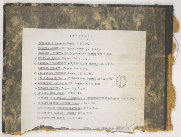 Ce fonds constitue la principale source française d'informations sur les spoliations de biens culturels commises contre les victimes juives (Alliance israélite universelle, consistoires, particuliers) et les victimes non juives (musées, bibliothèques, particuliers) pendant la Seconde Guerre mondiale. Il donne des éléments d'information sur les biens signalés spoliés par les victimes ou rapatriés par les services chargés de la récupération artistique. Il peut donner des informations sur l'itinéraire du bien, sa spoliation, sa récupération éventuelle et son rapatriement.