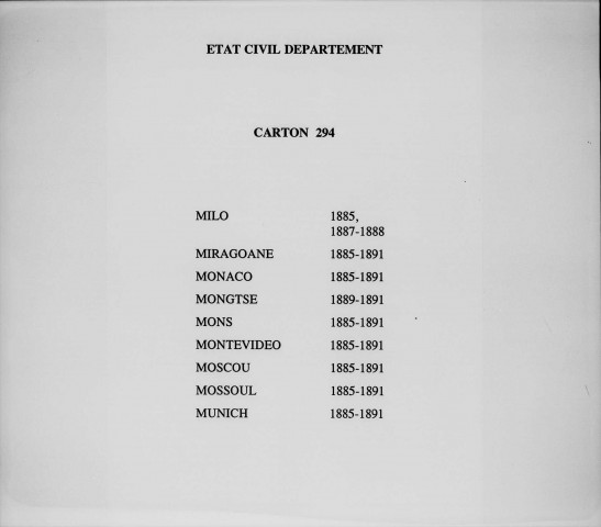 En 1994, date de la première rédaction du présent inventaire, la collection des registres duplicata versés à la direction des Archives s'étendait des origines de l'état civil consulaire (soit l'extrême fin du XVIIIe siècle pour les registres les plus anciens) à 1891.