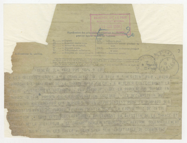 Demandes des grecs « irrédimés », hellènes, de Turquie d'être rattachés à la Grèce (janvier 1919-mai 1919).