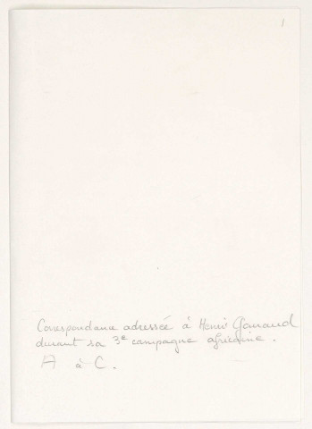 Un peu moins abondante, cette seconde partie du fonds permet d'apporter un éclairage sur d'autres aspects de sa personnalité. Outre ses engagements associatifs (399 PAAP/347-348), le point qui frappe le plus, et qui pourrait à lui seul faire l'objet d'une étude, est son activité d'épistolier infatigable et -au final- d'archiviste. Aidé il est vrai par son secrétaire, Gouraud fait preuve dans le classement de sa volumineuse correspondance personnelle d'un réel goût pour les archives. La plupart des dossiers se présentent dans des sous-chemises ou enveloppes portant un numéro à l'encre rouge ou violette avec, quelquefois, une lettre ou un nom propre de lieu ; plusieurs modes de classement sont choisis : les dossiers nominatifs constitués par le général (399 PAAP/349-441), rassemblant sur une centaine d'articles la correspondance active et passive d'amis et de relations, à laquelle est jointe une documentation les concernant, sont classés dans une série générale d'une part (ordre alphabétique des correspondants, 399 PAAP/349-398, avec des vedettes sur quelques sommités comme Lyautey et sa famille, 399 PAAP/377-380 ou encore Pétain, 399 PAAP/387). Suivent d'autres dossiers de correspondants, tout aussi vastes, constitués eux dans un ordre thématique (399 PAAP/399-441) : hormis les correspondantes féminines (399 PAAP/399-400), les personnes morales, associations et comités (399 PAAP/439-440) ou encore ceux qualifiés d' « aventuriers » (399 PAAP/441), classés à part, l'ensemble des autres correspondants s'insère dans un cadre de classement géographique, chacun étant répertorié selon son pays d'origine ou d'exercice, depuis la Belgique (399 PAAP/402-404) jusqu'à la Syrie (399 PAAP/428-437), en passant par ses terres d'élection que furent les Etats-Unis (399 PAAP/409-415), l'Alsace (399 PAAP/418/420) et bien sûr le Maroc (399 PAAP/421-422).