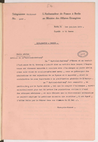 - Télégrammes de Berlin (départ) :