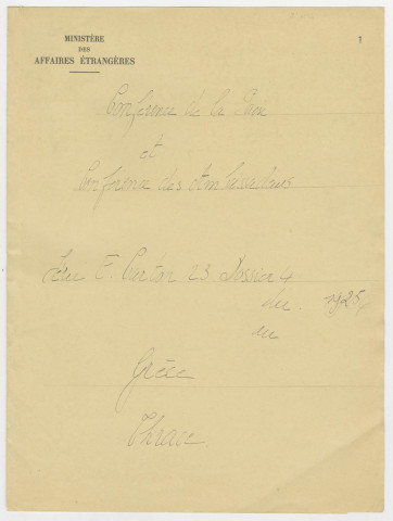Tous les articles communicables peuvent être reproduits pour usage personnel. Pour les utilisations publiques ou commerciales, il convient de s'enquérir des conditions auprès des Archives diplomatiques.
