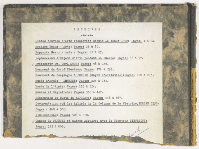 Ce fonds constitue la principale source française d'informations sur les spoliations de biens culturels commises contre les victimes juives (Alliance israélite universelle, consistoires, particuliers) et les victimes non juives (musées, bibliothèques, particuliers) pendant la Seconde Guerre mondiale. Il donne des éléments d'information sur les biens signalés spoliés par les victimes ou rapatriés par les services chargés de la récupération artistique. Il peut donner des informations sur l'itinéraire du bien, sa spoliation, sa récupération éventuelle et son rapatriement.