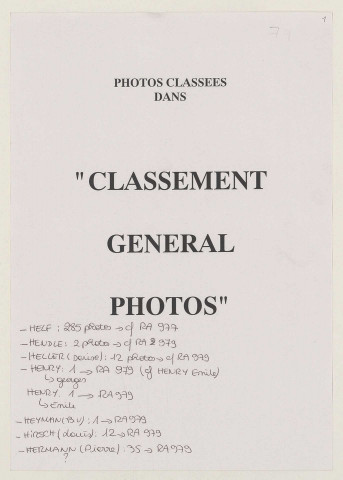 Cet série se compose de 2443 dossiers nominatifs de réclamation adressés par les victimes (institutions ou particuliers) à la Commission de récupération artistique à partir de novembre 1944. Ces dossiers sont classés par noms de requérants. Cette série constitue le noyau originel des archives des services français de récupération artistique. Les dossiers de réclamation sont de volumes très divers (depuis celui composé de quelques feuillets, jusqu'aux dossiers Alphonse Kann, Paul Rosenberg, Rothschild ou David-Weill qui emplissent plusieurs cartons).