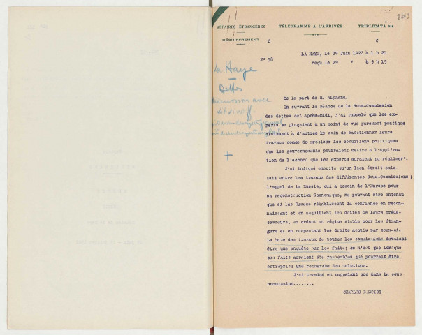 Les documents qui font l'objet de cet inventaire ont été donnés au ministère des Affaires étrangères en 1943, après la mort d'Alexandre Millerand, par le fils de celui-ci Jean.