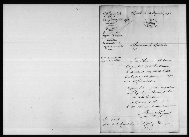Les actes de plus de 100 ans sont conservés par les Archives diplomatiques avec les autres registres de l'état civil consulaire.