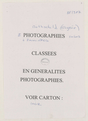 3. parfois la photographie des objets. Ces photographies ont été reclassées dans la série Albums photographiques.